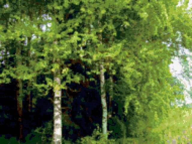 Ориентировочно так, схема вышивки «Unnamed-606357», созданная автором malkinaiv, будет выглядеть при отшиве на канве. Размер данной вышивки равен 190x143 крестов, при этом используется 42 цветов. Ключевые слова, по которым можно найти эту схему: пейзаж, деревья, опушка. Также, вы можете взглянуть на оригинальную картинку, соответствующую данной схеме вышивки.