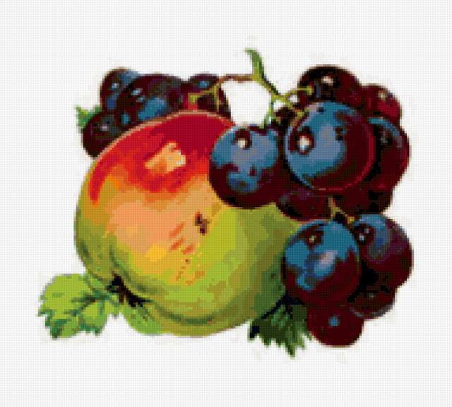 Ориентировочно так, схема вышивки «Unnamed-609424», созданная автором LiliyaLilia, будет выглядеть при отшиве на канве. Размер данной вышивки равен 190x171 крестов, при этом используется 76 цветов. Ключевые слова, по которым можно найти эту схему: фрукты, виноград, яблоки, картина, натюрморт. Также, вы можете взглянуть на оригинальную картинку, соответствующую данной схеме вышивки.