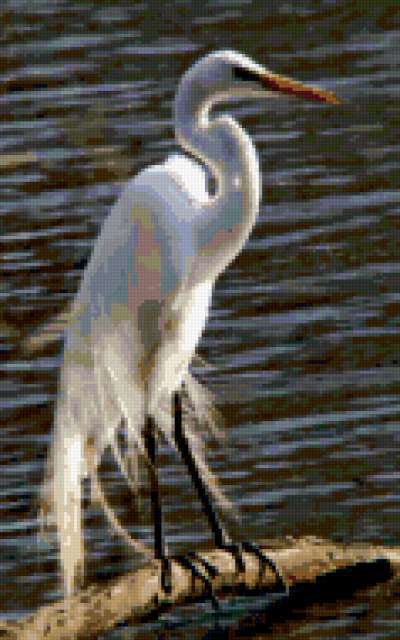 Ориентировочно так, схема вышивки «Unnamed-617369», созданная автором iborissova, будет выглядеть при отшиве на канве. Размер данной вышивки равен 119x190 крестов, при этом используется 65 цветов. Ключевые слова, по которым можно найти эту схему: bird, egret. Также, вы можете взглянуть на оригинальную картинку, соответствующую данной схеме вышивки.