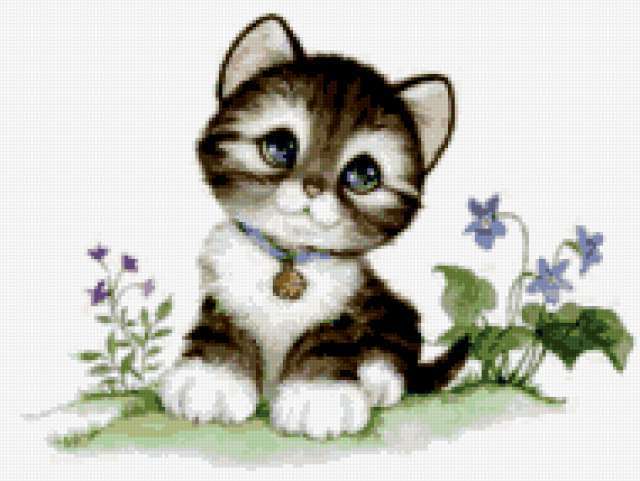 Ориентировочно так, схема вышивки «Unnamed-618307», созданная автором malkinaiv, будет выглядеть при отшиве на канве. Размер данной вышивки равен 190x143 крестов, при этом используется 46 цветов. Ключевые слова, по которым можно найти эту схему: котенок, кошки, животные, цветы. Также, вы можете взглянуть на оригинальную картинку, соответствующую данной схеме вышивки.