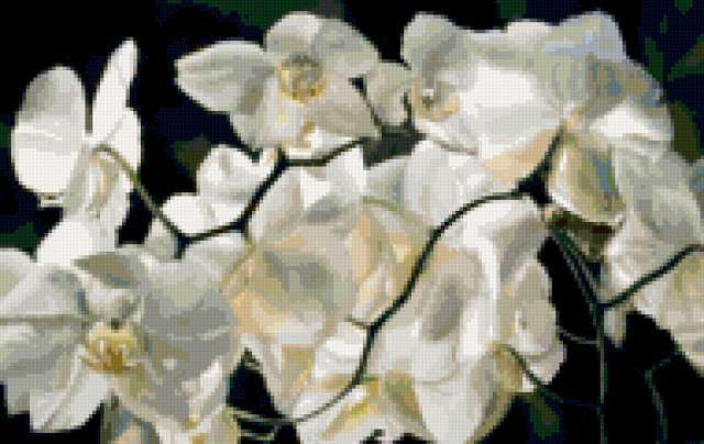 Ориентировочно так, схема вышивки «Unnamed-628900», созданная автором malkinaiv, будет выглядеть при отшиве на канве. Размер данной вышивки равен 190x120 крестов, при этом используется 43 цветов. Ключевые слова, по которым можно найти эту схему: цветы, орхидеи. Также, вы можете взглянуть на оригинальную картинку, соответствующую данной схеме вышивки.