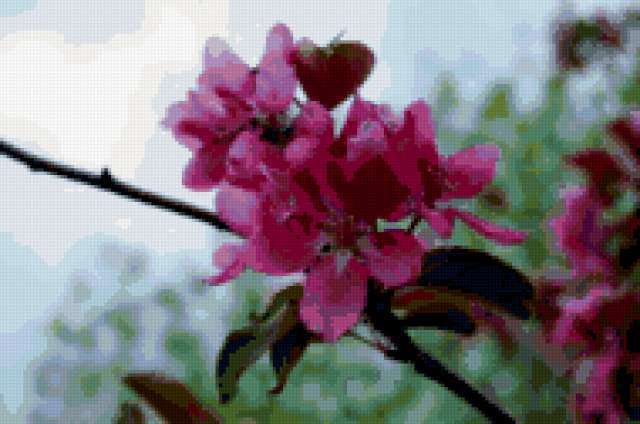 Ориентировочно так, схема вышивки «Unnamed-637203», созданная автором malkinaiv, будет выглядеть при отшиве на канве. Размер данной вышивки равен 190x126 крестов, при этом используется 69 цветов. Ключевые слова, по которым можно найти эту схему: цветы, весна, природа. Также, вы можете взглянуть на оригинальную картинку, соответствующую данной схеме вышивки.