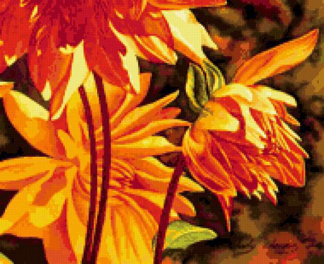 Ориентировочно так, схема вышивки «Unnamed-644317», созданная автором iborissova, будет выглядеть при отшиве на канве. Размер данной вышивки равен 190x155 крестов, при этом используется 44 цветов. Ключевые слова, по которым можно найти эту схему: flowers, dahlia. Также, вы можете взглянуть на оригинальную картинку, соответствующую данной схеме вышивки.