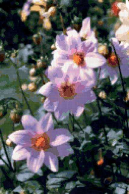Ориентировочно так, схема вышивки «Unnamed-673700», созданная автором malkinaiv, будет выглядеть при отшиве на канве. Размер данной вышивки равен 127x190 крестов, при этом используется 66 цветов. Ключевые слова, по которым можно найти эту схему: цветы, георгины. Также, вы можете взглянуть на оригинальную картинку, соответствующую данной схеме вышивки.