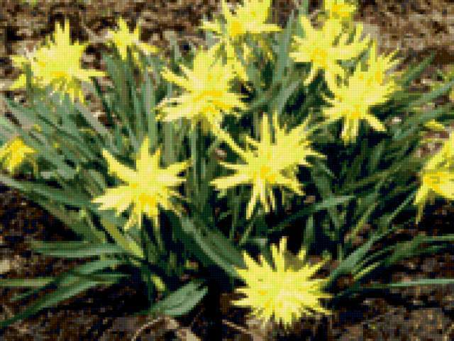 Ориентировочно так, схема вышивки «Unnamed-674375», созданная автором malkinaiv, будет выглядеть при отшиве на канве. Размер данной вышивки равен 190x143 крестов, при этом используется 55 цветов. Ключевые слова, по которым можно найти эту схему: цветы, нарциссы. Также, вы можете взглянуть на оригинальную картинку, соответствующую данной схеме вышивки.