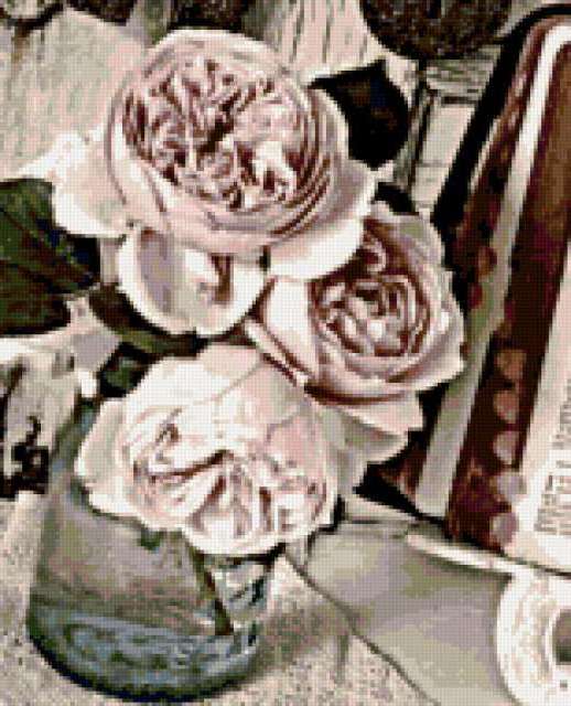 Ориентировочно так, схема вышивки «Unnamed-674772», созданная автором ayse, будет выглядеть при отшиве на канве. Размер данной вышивки равен 154x190 крестов, при этом используется 42 цветов. Ключевые слова, по которым можно найти эту схему: buket, svetq, vaza, roses. Также, вы можете взглянуть на оригинальную картинку, соответствующую данной схеме вышивки.