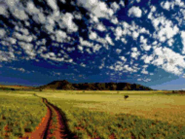 Ориентировочно так, схема вышивки «Unnamed-686554», созданная автором malkinaiv, будет выглядеть при отшиве на канве. Размер данной вышивки равен 190x143 крестов, при этом используется 62 цветов. Ключевые слова, по которым можно найти эту схему: пейзаж, дорога, небо, облака. Также, вы можете взглянуть на оригинальную картинку, соответствующую данной схеме вышивки.