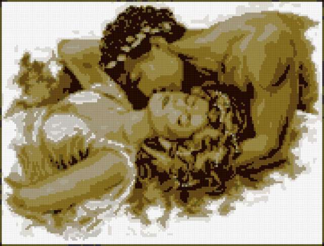 Ориентировочно так, схема вышивки «Unnamed-691846», созданная автором ir-ir, будет выглядеть при отшиве на канве. Размер данной вышивки равен 180x137 крестов, при этом используется 12 цветов. К несчастью, автор не назначил для схемы ключевые слова. Также, вы можете взглянуть на оригинальную картинку, соответствующую данной схеме вышивки.