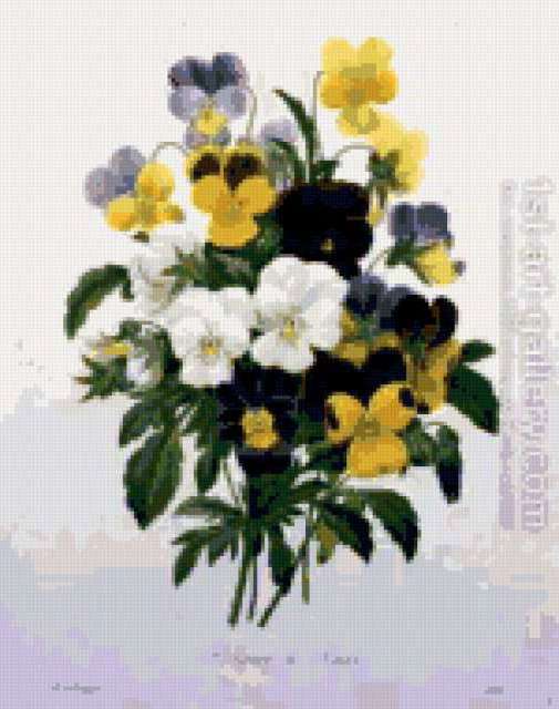 Ориентировочно так, схема вышивки «Unnamed-708862», созданная автором ayse, будет выглядеть при отшиве на канве. Размер данной вышивки равен 150x190 крестов, при этом используется 43 цветов. Ключевые слова, по которым можно найти эту схему: buket, svetq, fialki. Также, вы можете взглянуть на оригинальную картинку, соответствующую данной схеме вышивки.