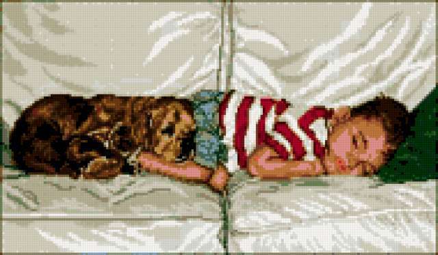 Ориентировочно так, схема вышивки «Unnamed-714787», созданная автором irada68, будет выглядеть при отшиве на канве. Размер данной вышивки равен 190x111 крестов, при этом используется 47 цветов. Ключевые слова, по которым можно найти эту схему: мальчик, собака, друзья, дружба. Также, вы можете взглянуть на оригинальную картинку, соответствующую данной схеме вышивки.