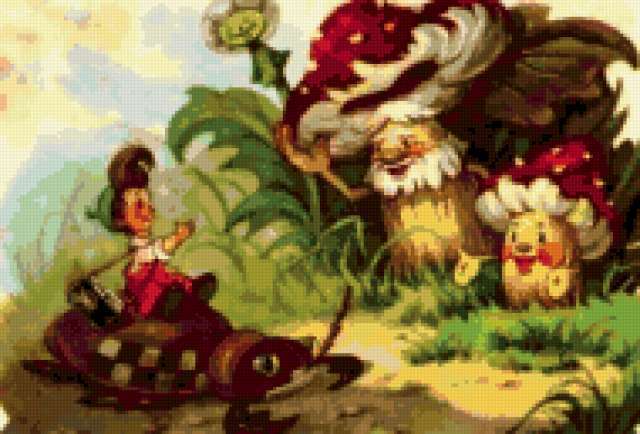 Ориентировочно так, схема вышивки «Unnamed-71518», созданная автором nutaa, будет выглядеть при отшиве на канве. Размер данной вышивки равен 190x129 крестов, при этом используется 75 цветов. К несчастью, автор не назначил для схемы ключевые слова. Также, вы можете взглянуть на оригинальную картинку, соответствующую данной схеме вышивки.