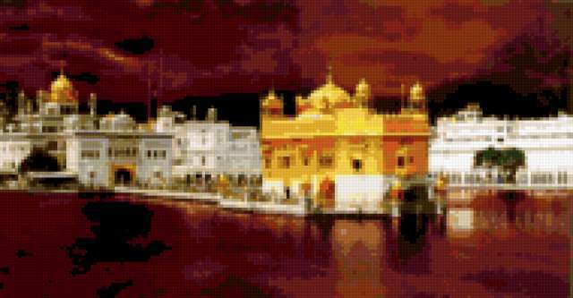 Ориентировочно так, схема вышивки «Unnamed-716917», созданная автором iborissova, будет выглядеть при отшиве на канве. Размер данной вышивки равен 190x99 крестов, при этом используется 60 цветов. Ключевые слова, по которым можно найти эту схему: golden temple. Также, вы можете взглянуть на оригинальную картинку, соответствующую данной схеме вышивки.