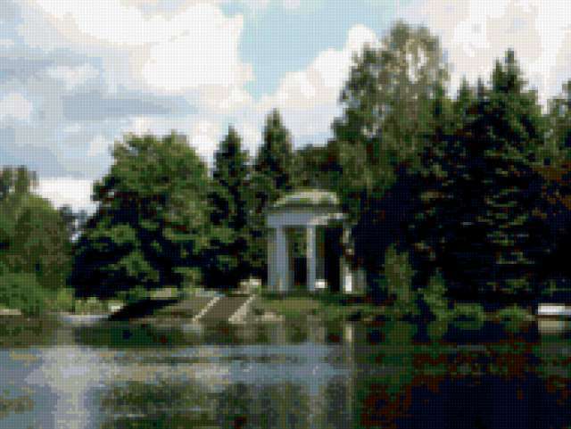 Ориентировочно так, схема вышивки «Unnamed-717873», созданная автором malkinaiv, будет выглядеть при отшиве на канве. Размер данной вышивки равен 190x143 крестов, при этом используется 52 цветов. Ключевые слова, по которым можно найти эту схему: пейзаж, парки, озеро, деревья, беседка. Также, вы можете взглянуть на оригинальную картинку, соответствующую данной схеме вышивки.
