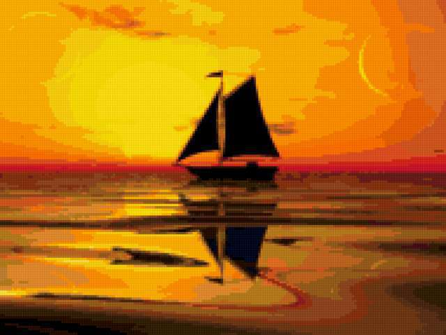 Ориентировочно так, схема вышивки «Unnamed-727409», созданная автором sholmovamaria, будет выглядеть при отшиве на канве. Размер данной вышивки равен 190x143 крестов, при этом используется 35 цветов. Ключевые слова, по которым можно найти эту схему: море, парусник. Также, вы можете взглянуть на оригинальную картинку, соответствующую данной схеме вышивки.