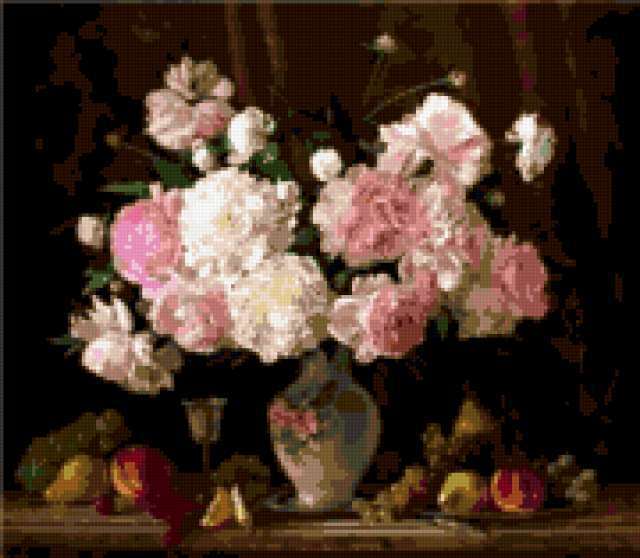 Ориентировочно так, схема вышивки «Unnamed-727469», созданная автором sholmovamaria, будет выглядеть при отшиве на канве. Размер данной вышивки равен 180x157 крестов, при этом используется 43 цветов. Ключевые слова, по которым можно найти эту схему: натюрморт, цветы. Также, вы можете взглянуть на оригинальную картинку, соответствующую данной схеме вышивки.
