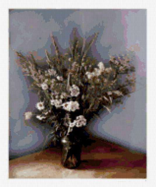 Ориентировочно так, схема вышивки «Unnamed-728957», созданная автором 1969vev, будет выглядеть при отшиве на канве. Размер данной вышивки равен 159x190 крестов, при этом используется 57 цветов. К несчастью, автор не назначил для схемы ключевые слова. Также, вы можете взглянуть на оригинальную картинку, соответствующую данной схеме вышивки.