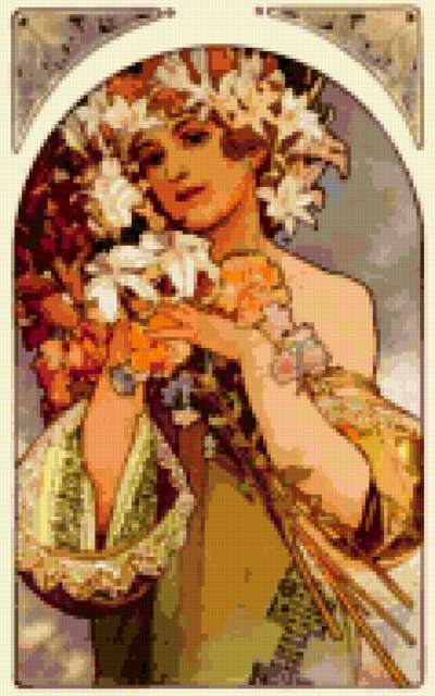 Ориентировочно так, схема вышивки «Unnamed-735712», созданная автором margoritag, будет выглядеть при отшиве на канве. Размер данной вышивки равен 119x190 крестов, при этом используется 58 цветов. Ключевые слова, по которым можно найти эту схему: девушка, картина, рисунок, разное. Также, вы можете взглянуть на оригинальную картинку, соответствующую данной схеме вышивки.