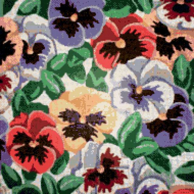 Ориентировочно так, схема вышивки «Unnamed-737535», созданная автором ayse, будет выглядеть при отшиве на канве. Размер данной вышивки равен 190x190 крестов, при этом используется 47 цветов. Ключевые слова, по которым можно найти эту схему: buket, svetq, fialki. Также, вы можете взглянуть на оригинальную картинку, соответствующую данной схеме вышивки.