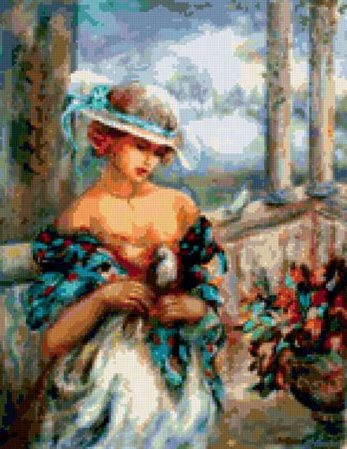 Ориентировочно так, схема вышивки «Unnamed-741577», созданная автором margoritag, будет выглядеть при отшиве на канве. Размер данной вышивки равен 147x190 крестов, при этом используется 71 цветов. Ключевые слова, по которым можно найти эту схему: девушка, картина, рисунок, разное. Также, вы можете взглянуть на оригинальную картинку, соответствующую данной схеме вышивки.