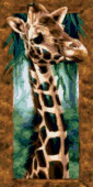 Ориентировочно так, схема вышивки «Unnamed-748737», созданная автором anor, будет выглядеть при отшиве на канве. Размер данной вышивки равен 85x170 крестов, при этом используется 40 цветов. Ключевые слова, по которым можно найти эту схему: жираф, животные, картина, панно. Также, вы можете взглянуть на оригинальную картинку, соответствующую данной схеме вышивки.
