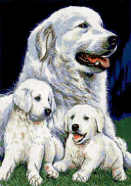 Ориентировочно так, схема вышивки «Unnamed-755477», созданная автором anor, будет выглядеть при отшиве на канве. Размер данной вышивки равен 134x190 крестов, при этом используется 39 цветов. Ключевые слова, по которым можно найти эту схему: собака, щенки, картина. Также, вы можете взглянуть на оригинальную картинку, соответствующую данной схеме вышивки.