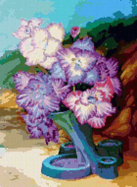 Ориентировочно так, схема вышивки «Unnamed-758757», созданная автором ayse, будет выглядеть при отшиве на канве. Размер данной вышивки равен 140x190 крестов, при этом используется 46 цветов. Ключевые слова, по которым можно найти эту схему: buket, svetq, vaza. Также, вы можете взглянуть на оригинальную картинку, соответствующую данной схеме вышивки.