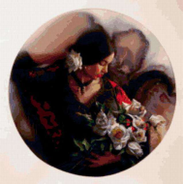 Ориентировочно так, схема вышивки «Unnamed-761870», созданная автором milan77777, будет выглядеть при отшиве на канве. Размер данной вышивки равен 189x190 крестов, при этом используется 62 цветов. Ключевые слова, по которым можно найти эту схему: девушка, цветы. Также, вы можете взглянуть на оригинальную картинку, соответствующую данной схеме вышивки.
