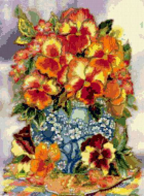 Ориентировочно так, схема вышивки «Unnamed-790689», созданная автором ayse, будет выглядеть при отшиве на канве. Размер данной вышивки равен 140x190 крестов, при этом используется 50 цветов. Ключевые слова, по которым можно найти эту схему: buket, svetq, fialki. Также, вы можете взглянуть на оригинальную картинку, соответствующую данной схеме вышивки.