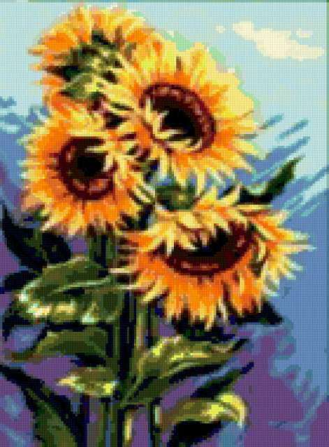 Ориентировочно так, схема вышивки «Unnamed-797562», созданная автором anor, будет выглядеть при отшиве на канве. Размер данной вышивки равен 140x190 крестов, при этом используется 76 цветов. Ключевые слова, по которым можно найти эту схему: цветы, подсолнухи, для интерьера, для офиса, картина. Также, вы можете взглянуть на оригинальную картинку, соответствующую данной схеме вышивки.