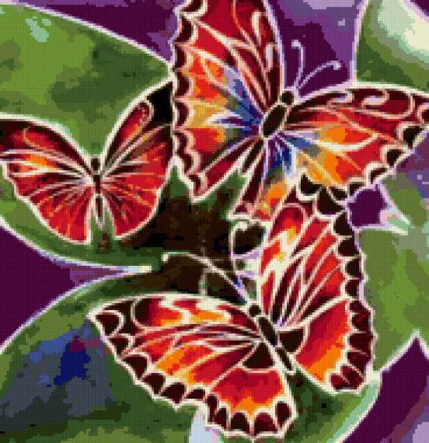 Ориентировочно так, схема вышивки «Unnamed-802829», созданная автором malkinaiv, будет выглядеть при отшиве на канве. Размер данной вышивки равен 184x190 крестов, при этом используется 49 цветов. Ключевые слова, по которым можно найти эту схему: бабочки, насекомые, подушки. Также, вы можете взглянуть на оригинальную картинку, соответствующую данной схеме вышивки.
