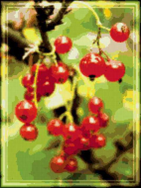 Ориентировочно так, схема вышивки «Unnamed-803700», созданная автором malkinaiv, будет выглядеть при отшиве на канве. Размер данной вышивки равен 142x190 крестов, при этом используется 44 цветов. Ключевые слова, по которым можно найти эту схему: ягоды, смородина. Также, вы можете взглянуть на оригинальную картинку, соответствующую данной схеме вышивки.
