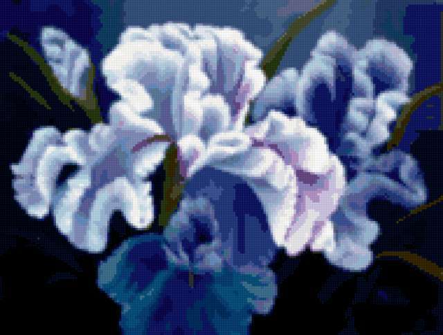 Ориентировочно так, схема вышивки «Unnamed-810129», созданная автором iborissova, будет выглядеть при отшиве на канве. Размер данной вышивки равен 190x144 крестов, при этом используется 47 цветов. Ключевые слова, по которым можно найти эту схему: irises. Также, вы можете взглянуть на оригинальную картинку, соответствующую данной схеме вышивки.