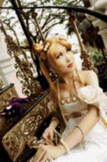 Ориентировочно так, схема вышивки «Unnamed-816870», созданная автором AuraDomo, будет выглядеть при отшиве на канве. Размер данной вышивки равен 126x190 крестов, при этом используется 75 цветов. Ключевые слова, по которым можно найти эту схему: сейлор мун, косплей. Также, вы можете взглянуть на оригинальную картинку, соответствующую данной схеме вышивки.