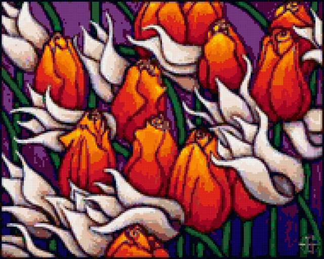 Ориентировочно так, схема вышивки «Unnamed-827092», созданная автором anor, будет выглядеть при отшиве на канве. Размер данной вышивки равен 190x152 крестов, при этом используется 48 цветов. Ключевые слова, по которым можно найти эту схему: цветы, подушка, для интерьера, для офиса, картина. Также, вы можете взглянуть на оригинальную картинку, соответствующую данной схеме вышивки.