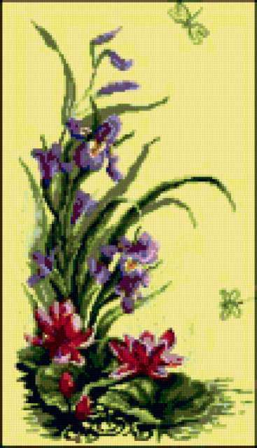 Ориентировочно так, схема вышивки «Unnamed-830484», созданная автором malkinaiv, будет выглядеть при отшиве на канве. Размер данной вышивки равен 109x190 крестов, при этом используется 42 цветов. Ключевые слова, по которым можно найти эту схему: цветы, стрекозы, насекомын. Также, вы можете взглянуть на оригинальную картинку, соответствующую данной схеме вышивки.