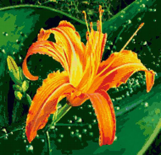 Ориентировочно так, схема вышивки «Unnamed-847583», созданная автором Nastysha, будет выглядеть при отшиве на канве. Размер данной вышивки равен 190x184 крестов, при этом используется 40 цветов. Ключевые слова, по которым можно найти эту схему: лилия, цветы. Также, вы можете взглянуть на оригинальную картинку, соответствующую данной схеме вышивки.