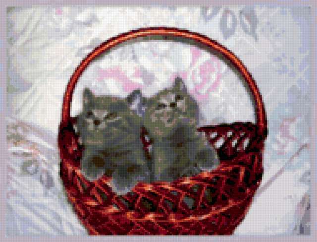 Ориентировочно так, схема вышивки «Unnamed-857064», созданная автором malkinaiv, будет выглядеть при отшиве на канве. Размер данной вышивки равен 190x145 крестов, при этом используется 63 цветов. Ключевые слова, по которым можно найти эту схему: котята, кошки, животные. Также, вы можете взглянуть на оригинальную картинку, соответствующую данной схеме вышивки.