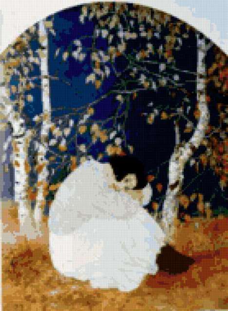 Ориентировочно так, схема вышивки «Unnamed-859279», созданная автором Minin, будет выглядеть при отшиве на канве. Размер данной вышивки равен 139x190 крестов, при этом используется 43 цветов. Ключевые слова, по которым можно найти эту схему: живопись, искусство, картина, люди, девушка. Также, вы можете взглянуть на оригинальную картинку, соответствующую данной схеме вышивки.