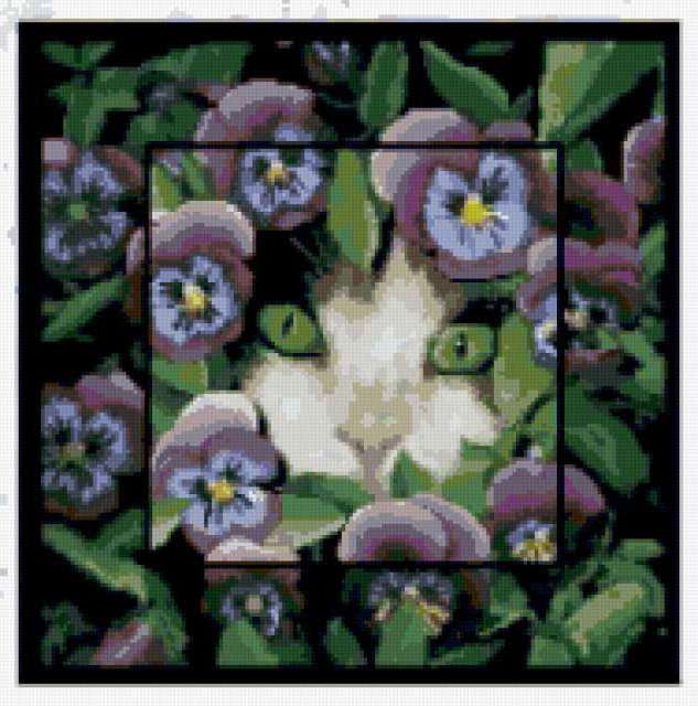 Ориентировочно так, схема вышивки «Unnamed-878175», созданная автором Nastysha, будет выглядеть при отшиве на канве. Размер данной вышивки равен 188x190 крестов, при этом используется 45 цветов. Ключевые слова, по которым можно найти эту схему: кошка, животные, цветы, подушка. Также, вы можете взглянуть на оригинальную картинку, соответствующую данной схеме вышивки.