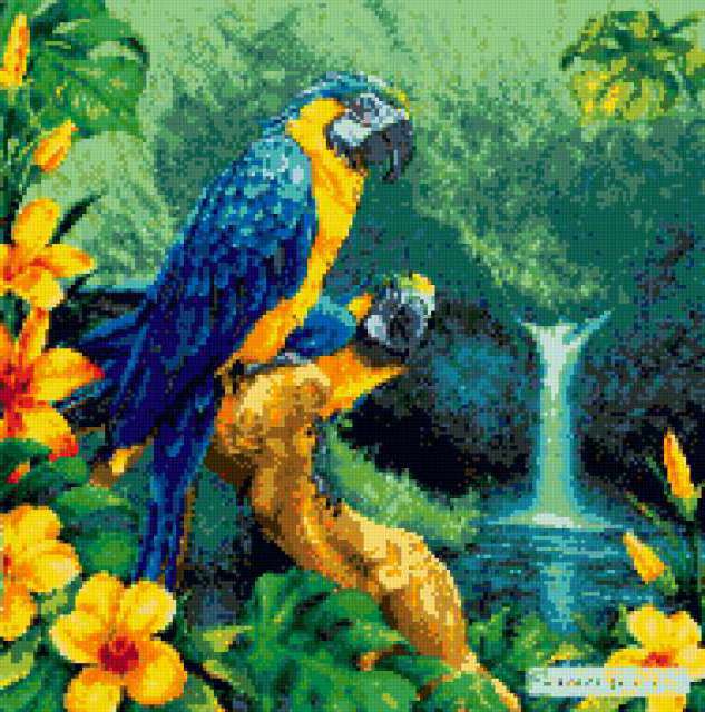 Ориентировочно так, схема вышивки «Unnamed-878345», созданная автором ayse, будет выглядеть при отшиве на канве. Размер данной вышивки равен 188x190 крестов, при этом используется 46 цветов. Ключевые слова, по которым можно найти эту схему: jivotni, peyzaj, pti4ki. Также, вы можете взглянуть на оригинальную картинку, соответствующую данной схеме вышивки.