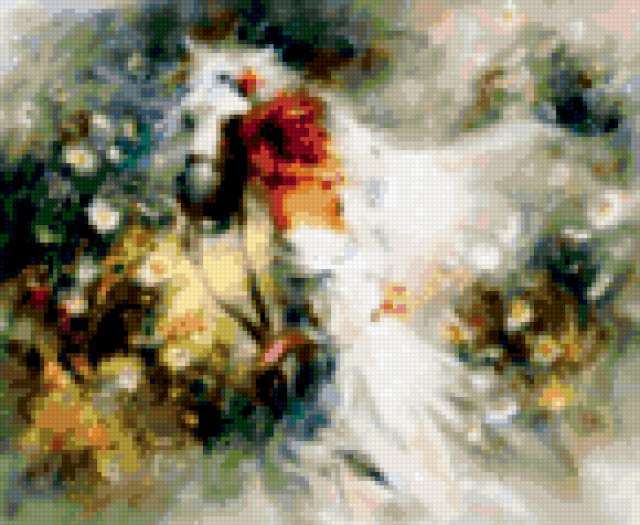 Ориентировочно так, схема вышивки «Unnamed-880283», созданная автором sofi83, будет выглядеть при отшиве на канве. Размер данной вышивки равен 145x119 крестов, при этом используется 84 цветов. К несчастью, автор не назначил для схемы ключевые слова. Также, вы можете взглянуть на оригинальную картинку, соответствующую данной схеме вышивки.