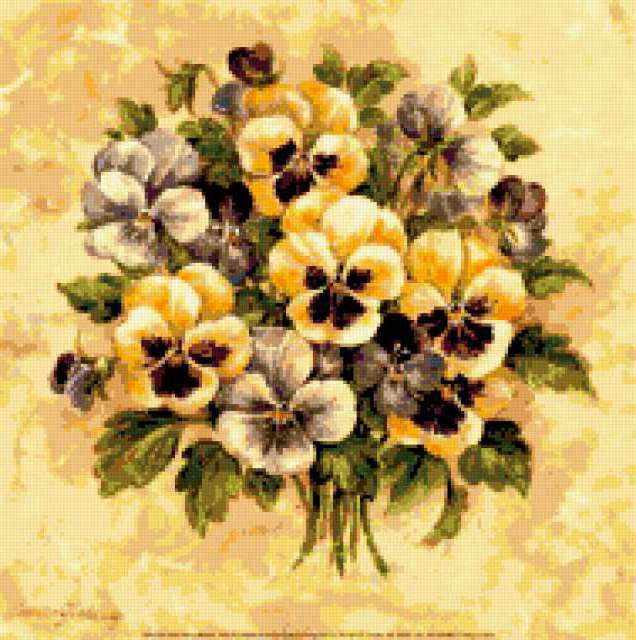 Ориентировочно так, схема вышивки «Unnamed-880824», созданная автором ayse, будет выглядеть при отшиве на канве. Размер данной вышивки равен 189x190 крестов, при этом используется 44 цветов. Ключевые слова, по которым можно найти эту схему: buket, svetq, fialki. Также, вы можете взглянуть на оригинальную картинку, соответствующую данной схеме вышивки.