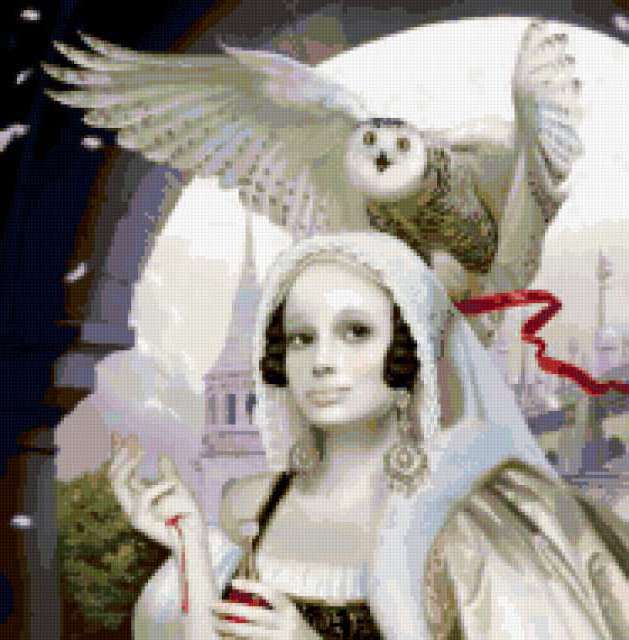 Ориентировочно так, схема вышивки «Unnamed-881695», созданная автором anor, будет выглядеть при отшиве на канве. Размер данной вышивки равен 187x190 крестов, при этом используется 64 цветов. Ключевые слова, по которым можно найти эту схему: девушка, картина, искусство, живопись, абстракция, сова. Также, вы можете взглянуть на оригинальную картинку, соответствующую данной схеме вышивки.