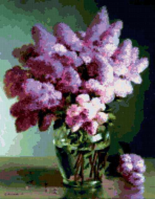 Ориентировочно так, схема вышивки «Unnamed-891058», созданная автором malkinaiv, будет выглядеть при отшиве на канве. Размер данной вышивки равен 148x190 крестов, при этом используется 61 цветов. Ключевые слова, по которым можно найти эту схему: цветы, букет, сирень. Также, вы можете взглянуть на оригинальную картинку, соответствующую данной схеме вышивки.