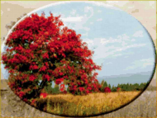 Ориентировочно так, схема вышивки «Unnamed-892678», созданная автором malkinaiv, будет выглядеть при отшиве на канве. Размер данной вышивки равен 190x143 крестов, при этом используется 78 цветов. Ключевые слова, по которым можно найти эту схему: пейзаж, дерево, рябина, природа, осень. Также, вы можете взглянуть на оригинальную картинку, соответствующую данной схеме вышивки.