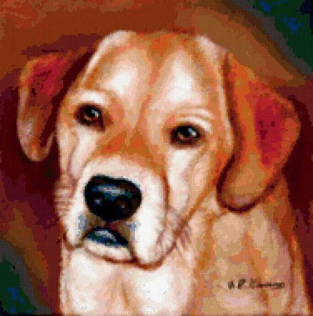 Ориентировочно так, схема вышивки «Unnamed-893603», созданная автором eldi_22, будет выглядеть при отшиве на канве. Размер данной вышивки равен 188x190 крестов, при этом используется 67 цветов. Ключевые слова, по которым можно найти эту схему: собака. Также, вы можете взглянуть на оригинальную картинку, соответствующую данной схеме вышивки.