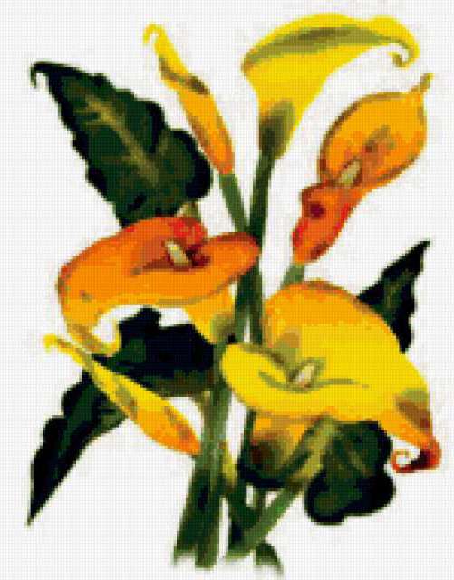 Ориентировочно так, схема вышивки «Unnamed-896225», созданная автором eldi_22, будет выглядеть при отшиве на канве. Размер данной вышивки равен 149x190 крестов, при этом используется 67 цветов. Ключевые слова, по которым можно найти эту схему: калы, цветы. Также, вы можете взглянуть на оригинальную картинку, соответствующую данной схеме вышивки.