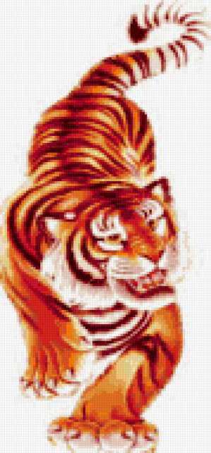 Ориентировочно так, схема вышивки «Unnamed-896450», созданная автором burova, будет выглядеть при отшиве на канве. Размер данной вышивки равен 89x190 крестов, при этом используется 39 цветов. Ключевые слова, по которым можно найти эту схему: тигр, кошки, хищники, животные. Также, вы можете взглянуть на оригинальную картинку, соответствующую данной схеме вышивки.