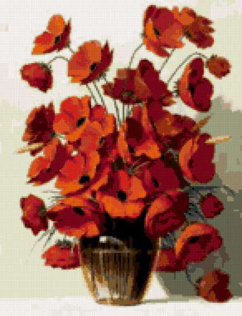 Ориентировочно так, схема вышивки «Unnamed-897337», созданная автором malkinaiv, будет выглядеть при отшиве на канве. Размер данной вышивки равен 146x190 крестов, при этом используется 42 цветов. Ключевые слова, по которым можно найти эту схему: цветы, букет, маки. Также, вы можете взглянуть на оригинальную картинку, соответствующую данной схеме вышивки.