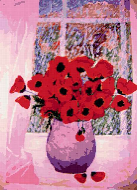 Ориентировочно так, схема вышивки «Unnamed-897778», созданная автором anor, будет выглядеть при отшиве на канве. Размер данной вышивки равен 138x190 крестов, при этом используется 39 цветов. Ключевые слова, по которым можно найти эту схему: цветы, маки, для интерьера, для офиса, картина. Также, вы можете взглянуть на оригинальную картинку, соответствующую данной схеме вышивки.